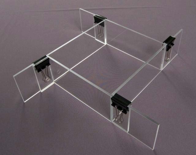 Our Adjust-A-Mold Box provides the reliability that is required when a mold is being made with some added convenience. The Adjust-A-Mold Box can be configured into many different sizes to custom fit a variety of molds up to 10" L x 10" W x 3" H. This amazing tool can be used over and over again, eliminating the need to purchase or build separate mold boxes. The Adjust-A-Mold Box includes 4 "L" shaped acrylic sides and 4 spring clips.