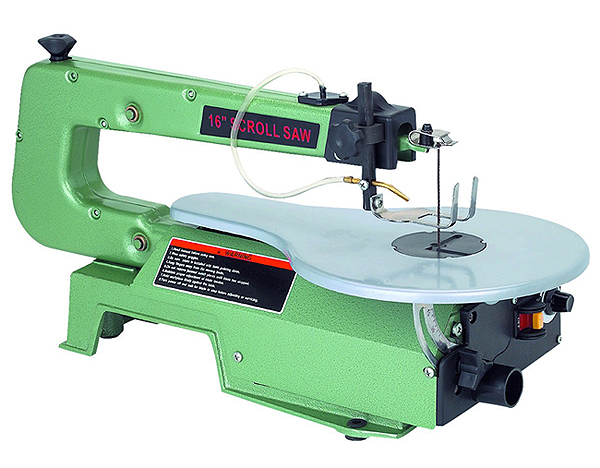 -Click Here- for Users Manual Variable-speed scroll saw does a beautiful job cutting highly intricate curves and designs quickly and precisely. 5" scroll saw blade can also be removed and re-inserted in a pre-drilled starting hole to cut designs even within your workpiece. Includes a 15-teeth-per-inch (TPI) scroll saw blade for 1/8"-to 1-1/2"-thick wood and 1/4" to 1-3/4" soft metals, wallboard and hardboard. You also get an 18-TPI blade for extra-thin cuts on soft wood and other materials up to 1/4" thick. Integrated air bellows keeps the cutting area clear; also includes 1-1/2"-O.D. vacuum port. Cast iron base for less vibration; holes for easy bench mounting. Removable safety insert.