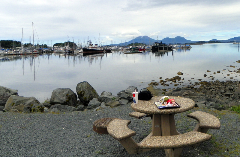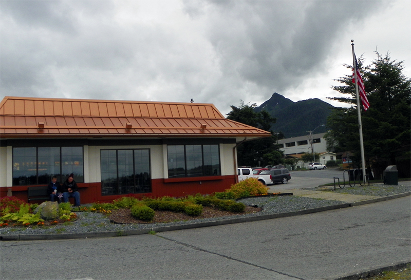 Plane getting ready for takeoff and taking off from Sitka Airport.
