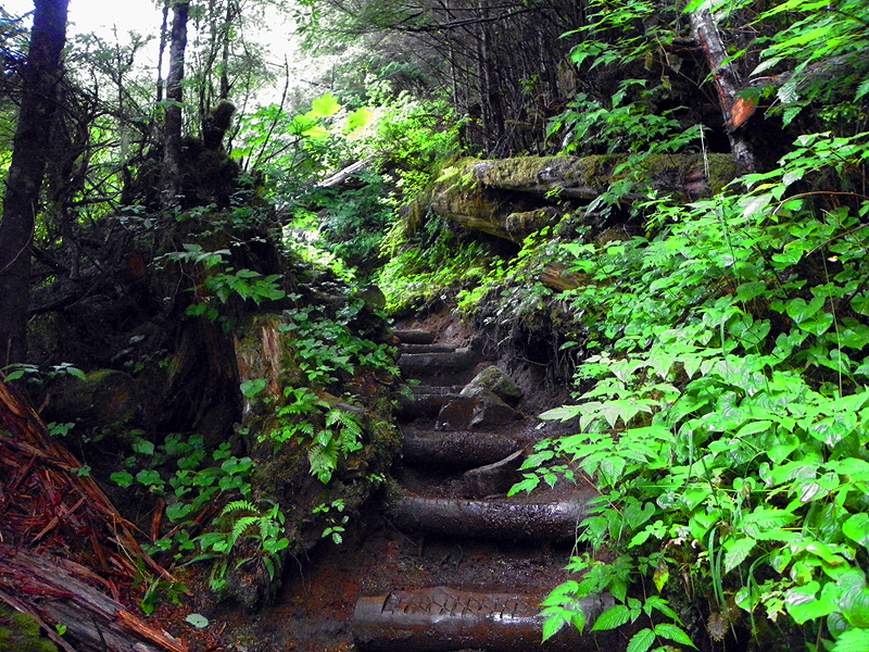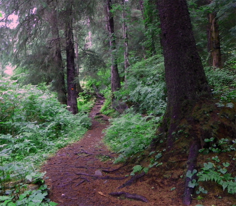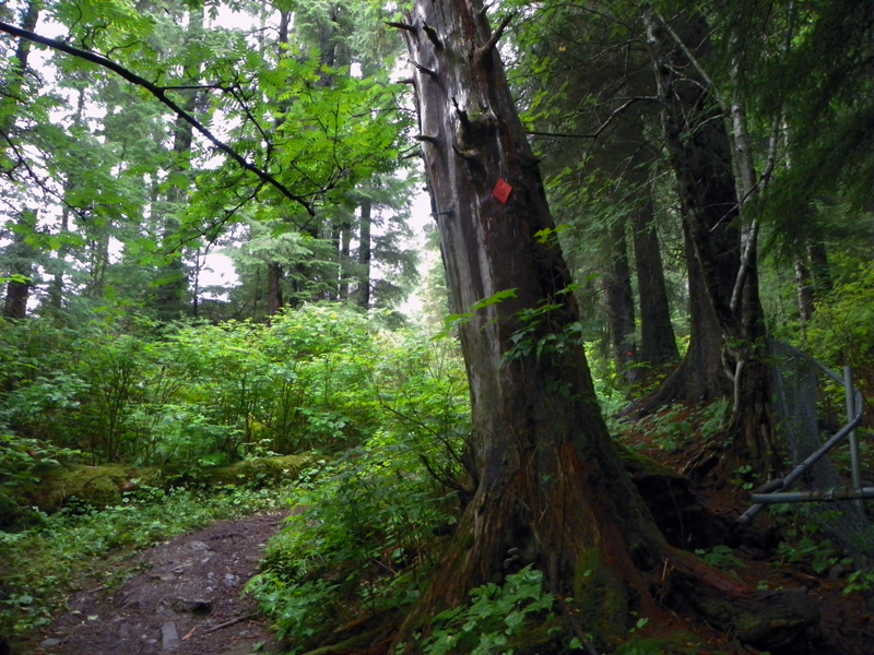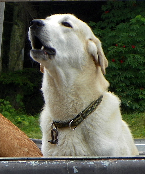 It was way too "socked in" to get any photos from any good vantage points. Did 2 short videos for Galahad that can be found at the end of the page, along with some dog pictures for Hannah. The dogs were in the back of a pick-up at the trail's head.